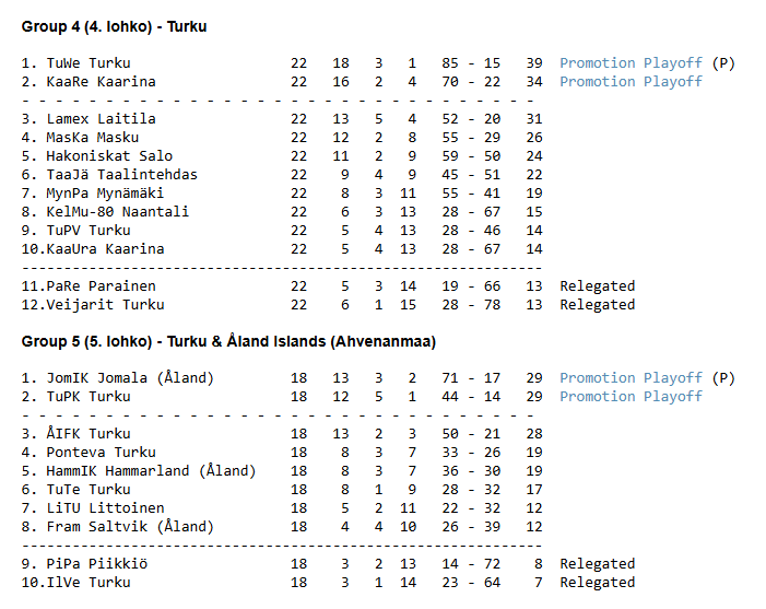 Sarjan joukkueet: TuPV (Turun Palloveikot), TuWe (Turun Weikot), KelMu-80 (Keltamustat-80 Naantali, TaaJä (Taalintehtaan Jäntevä), PaRe (Paraisten Rehti), MynPa (Mynämäen Pallo), Jyry (Turun Jyry), Lamex (Lamex Laitila), Veijarit (Veijarit Turku), HaHa (Halikon Hakoniskat), MasKa (Maskun Kataja), KaaRe (Kaarinan Reipas)