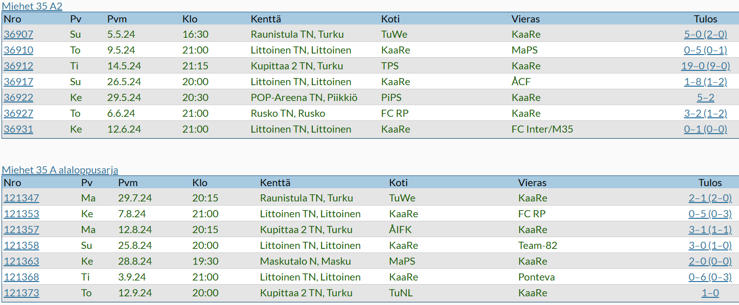 M35 otteluohjelma 2024