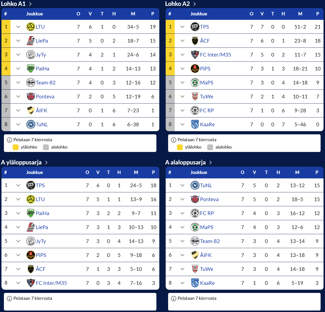 M35- ja M40-joukkueiden mennyt kausi 2024