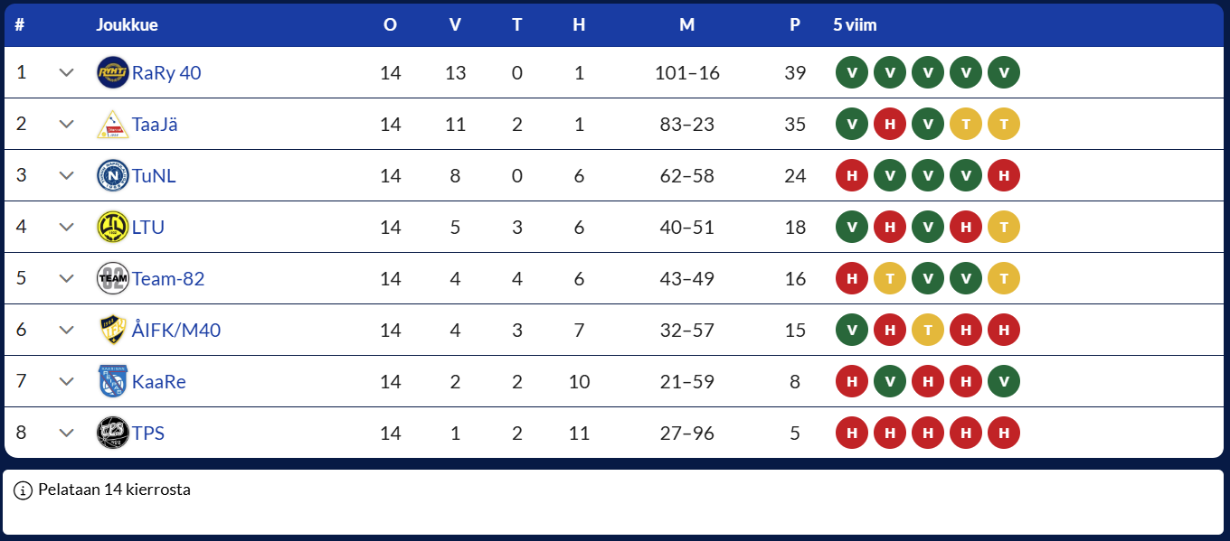 Kaudella 2024 M40-joukkue pelasi yhteensä 14 ottelua, voittaen niistä kaksi. Samoin tasapelejä joukkue saavutti kaksi kappaletta.