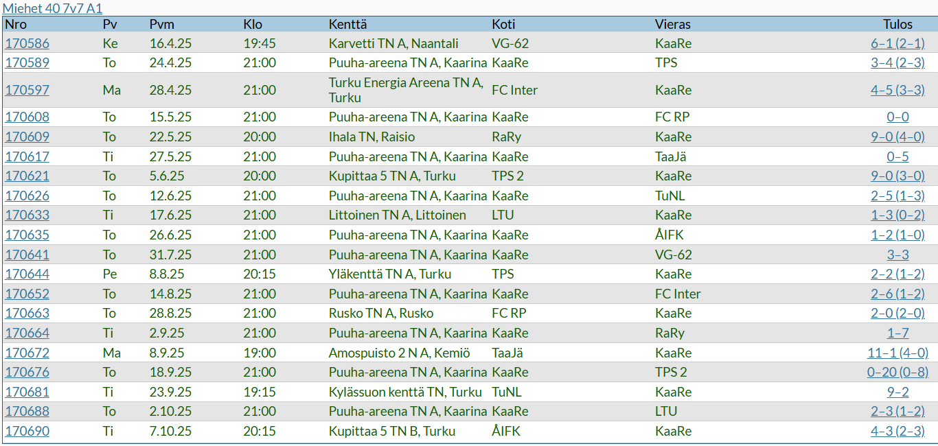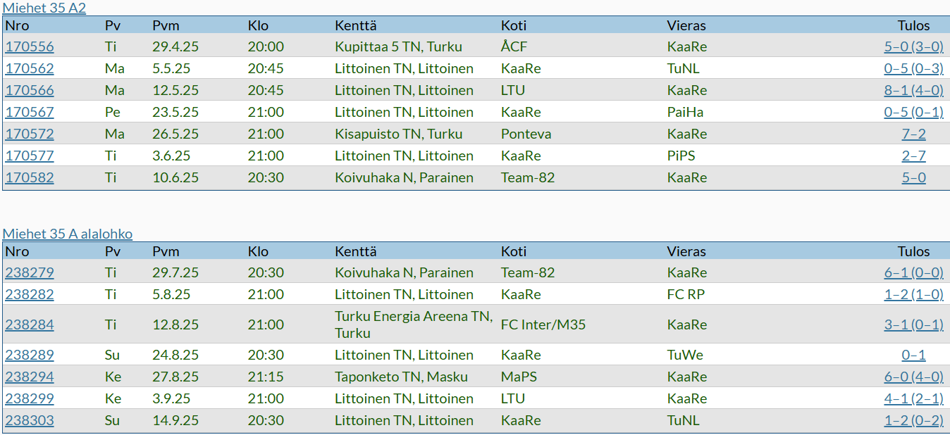 M35 otteluohjelma 2025