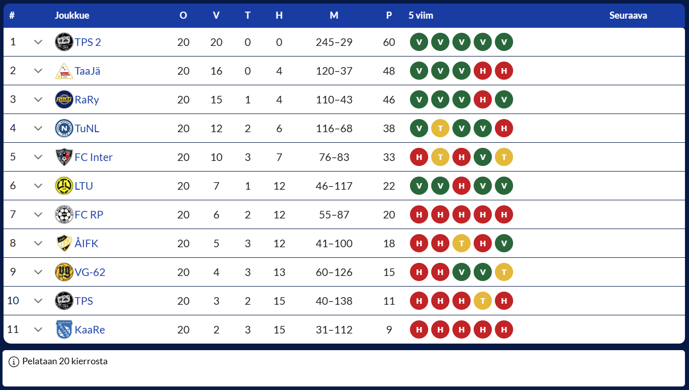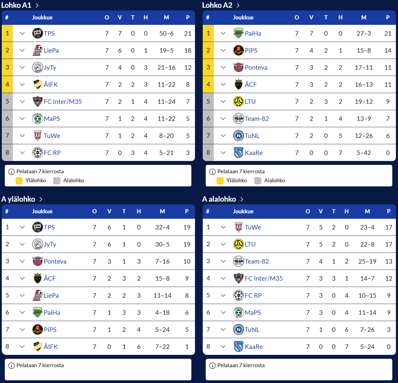 M35 sarjataulukko 2025